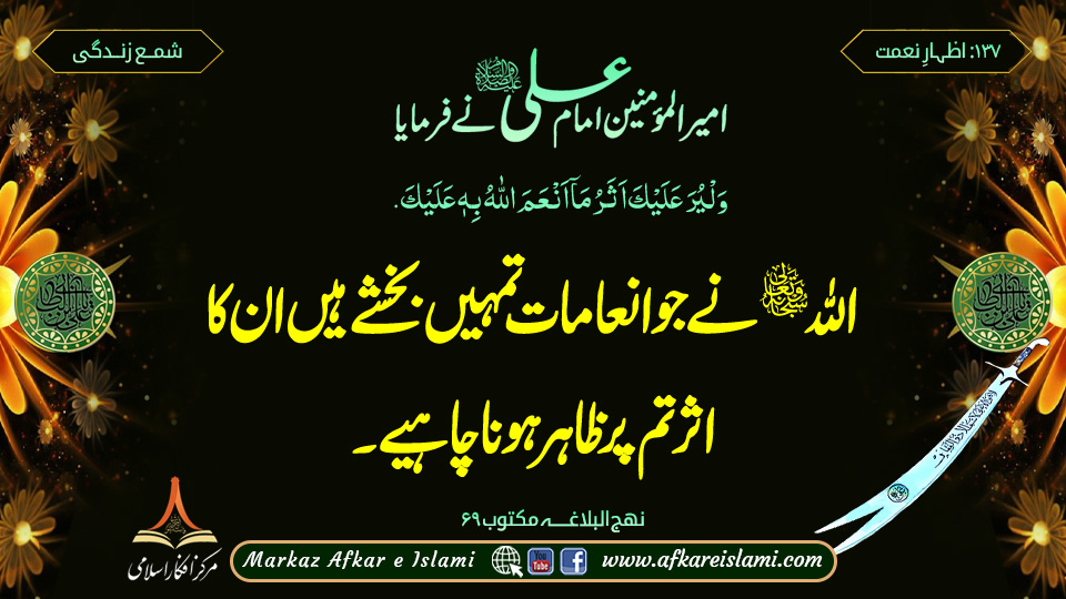 وَ لْیُرَ عَلَیْکَ اَثَرُ مَا اَنْعَمَ اللَّهُ بِهٖ عَلَیْکَ۔ (نہج البلاغہ خط 69)
